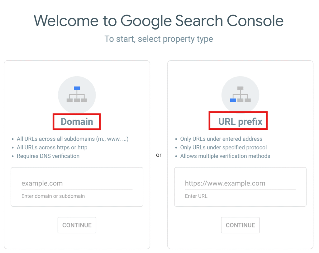 Cuando entras a Search Console, verás dos métodos:
