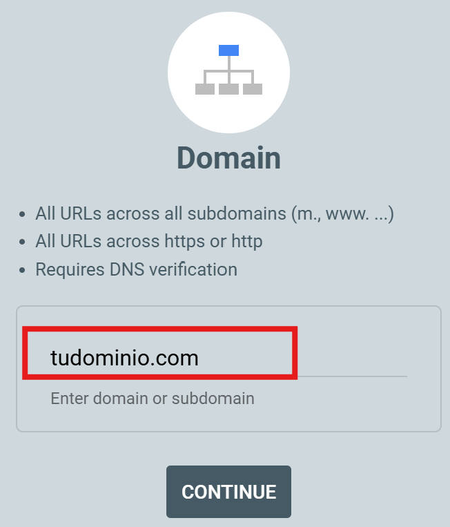 - Si quieres controlar toda tu web, elige Dominio.